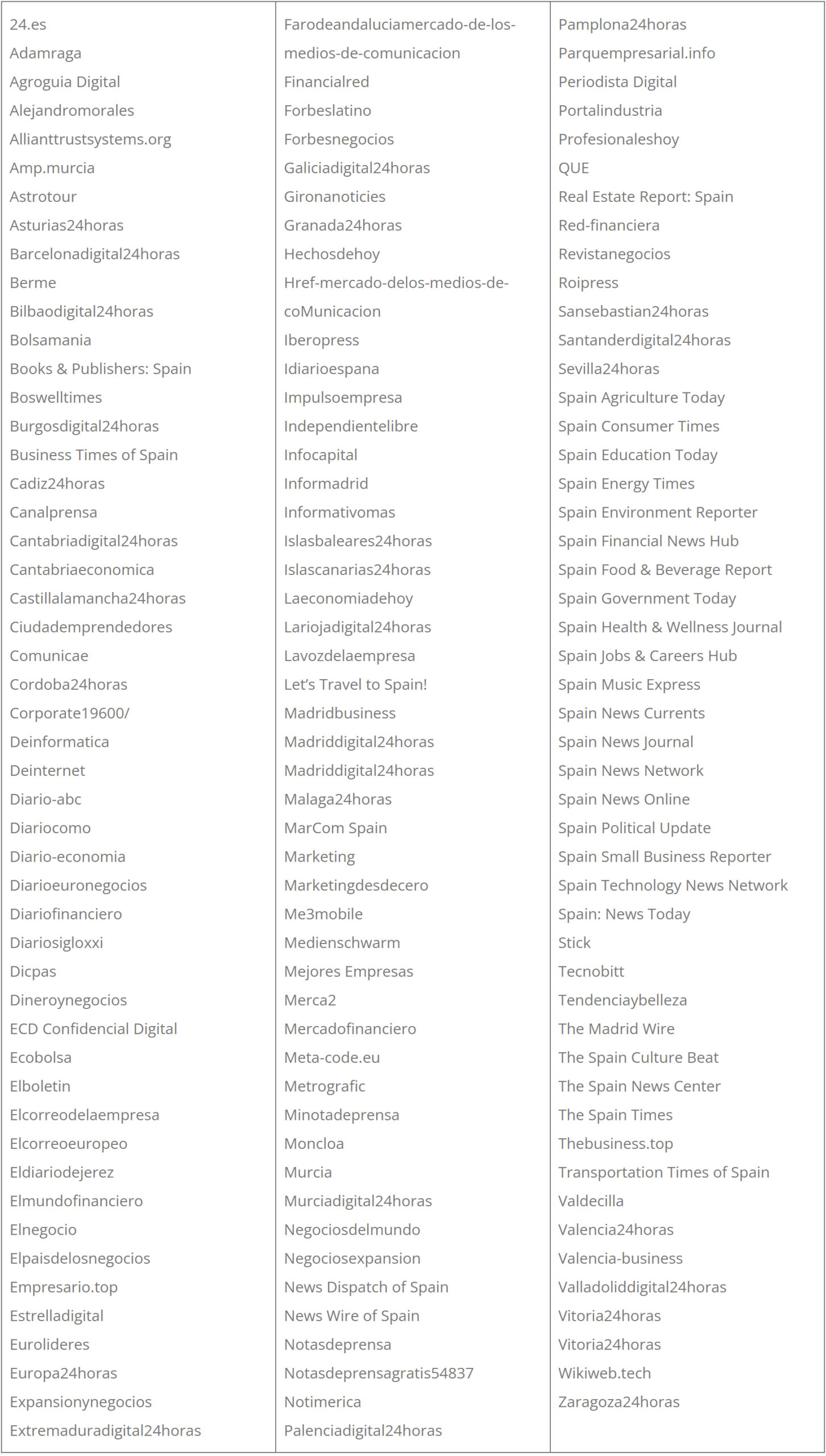 MERXWIRE 秉持著服務西語使用者的精神,在媒體網絡深度投入,截止 2025 年底,新聞稿可發到 140 個網站以上,以下為參考的網站媒體:
